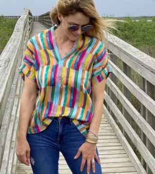 - Kimono Top: So If you have been following me for a while then you know I love to support small businesses especially women run businesses. Brooke Wright Designs is a designer in Fort Worth TX that I have been buying from for a few years now! I have several of her Kimono Tops and a few dresses too! Each season she comes out with a new line of fabric designs and they are always so hard to choose which one I want because they are all so good! These kimonos are a one size fits all and I love the flow fit they have.