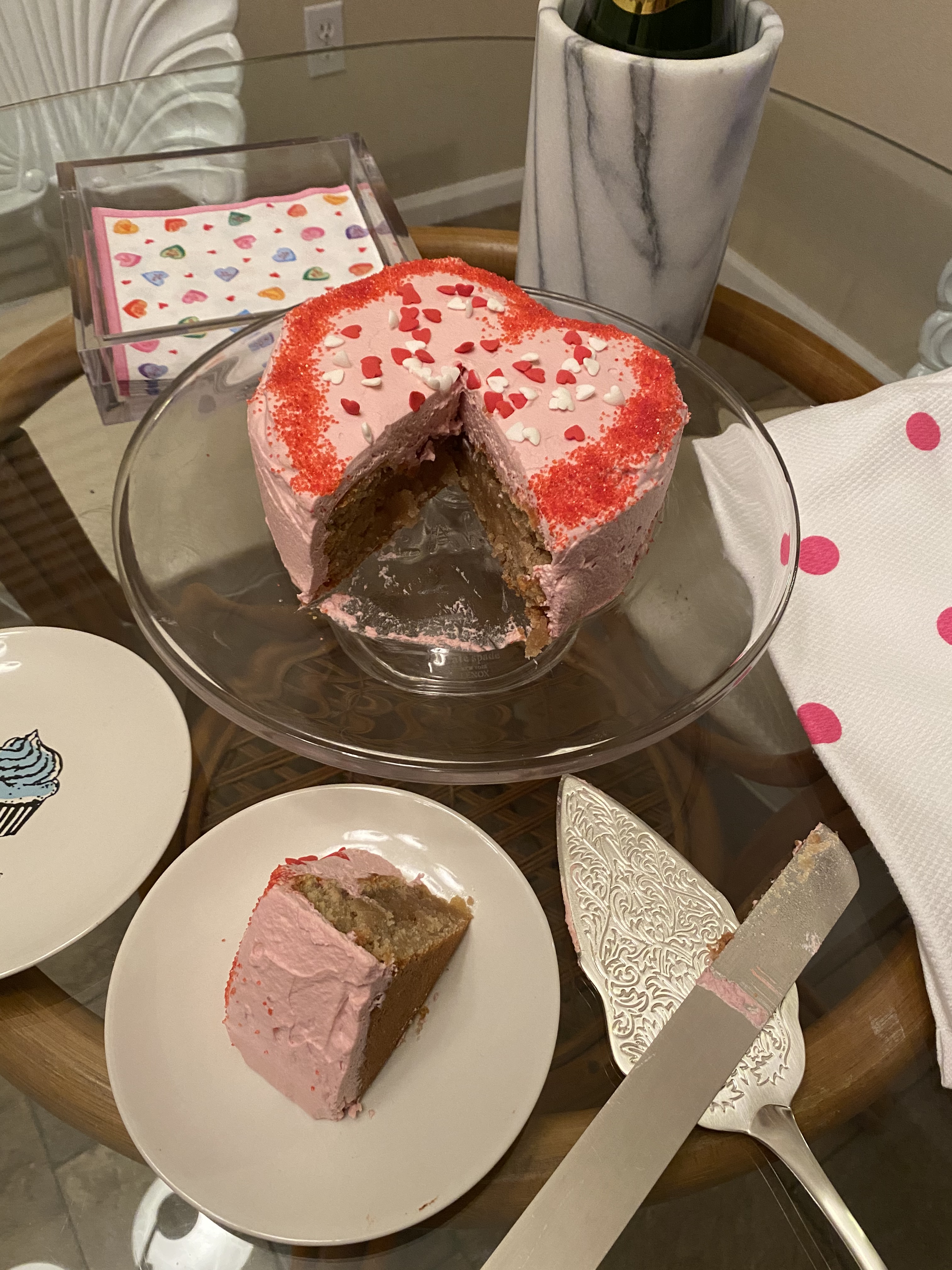To top it off I made Corbin and I a delicious cake from the Sweet Laurel Blog called Pretty Pink Valentines cake which turned out absolutely delicious! I even came up with the most perfectly Kate Spadesssk outfit and I love how it looked except I forgot to photograph myself wearing it. Oops haha.