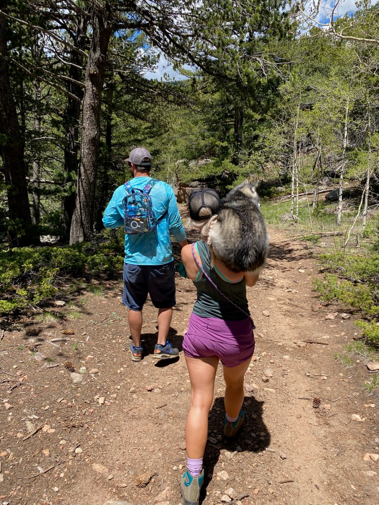 We went on this hike that was supposed to be 3 miles round trip and we took a wrong turn and ended up doing almost 10 miles hahaha that’s what I get for following Corbins directions. We hiked up to this old abandoned mine with a water fall above it which was beautiful. Miss Lulu was a trooper and did the whole hike with a few sections of carrying her to give her a rest. Once we got down from our hike we decided it was a good idea to go paddle boarding. We totally should have waited until the next morning because we were exhausted and the wind picked up and blew my friend to the other end of the lake. We made the most of it and packed up pretty quick to go back to our camp site to enjoy some more burgers and brats on the fire.