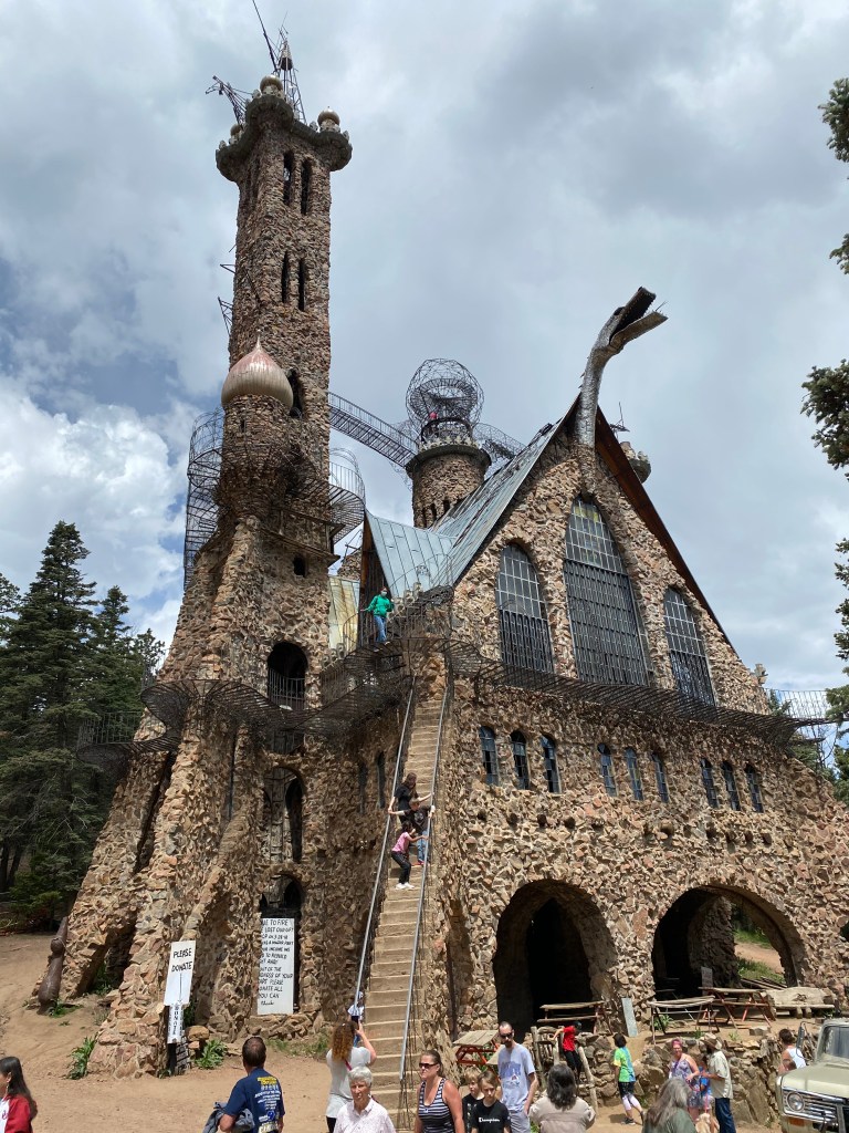 The last day of our little camping trip we went to this place that was other worldly and very not “to code” is what Corbin would say. It was called Bishop’s Castle. This guy built this massive castle on his private property and it is really something to see. The towers are super high and there was no way I was going to the top but the other two went up there. Everything is made of concrete and rocks and rebar, handmade iron work mixed with a bunch of random junk that he just made work for what he was making. It’s SUPER SKETCH but well worth the drive to go and see something super bizarre but artistic at the same time.