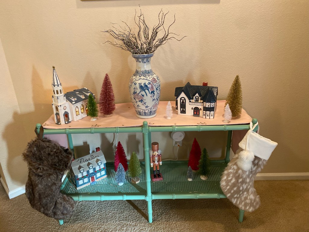 Here are a few snapshots of my holiday decor this year! You will never believe me but I painted those Axis Deer print chargers myself 🙂