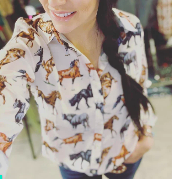 Horse Print Shirt: When I saw this shirt online I had to have it! It immediately reminded me of a book that my parents bought me for Christmas one year when I was like 7 or 8 about all the different types of horses there are and I used to love looking at that book. I was and still am a cowgirl at heart and a horse lover forever 🙂 If only I could convince my hubby to let me have a couple horses, that would be the day!