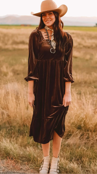 Velvet Dress: I am a sucker for velvet lately and this dress is so soft and comfy. I wore it on thanksgiving and I think I will wear it for Christmas too! I added a western wild rag aka neck scarf and a scarf ring that my friend made from sterling silver for me and the silk and velvet combo was a win in my book. I really like the subtle silver brown look. Its very understated and gorgeous. I’ve slowly been adding more muted colors to my closet to add some variety from the constant bright colors. It’s been nice to mix it up.