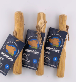 Mumbies Sticks: I know what your thinking…. you are thinking wow she bought a stick and yes I did! My dogs love sticks and I have had several friends had to take their dogs to emergency vet for splinters, sticks stabbing trough cheeks etc. I wanted the piece of mind and these do just that! Kenai can chew on a stick and it just crumbles. They are made from coffee bean tree wood which is very durable yet doesnt splinter and is more like a fiber when chewed on.