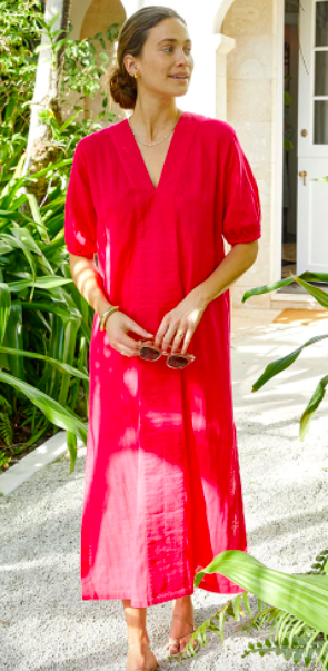 Caftan: Lake Pajamas has done it again with their latest summer casual wear. I got this caftan in hopes of being able to travel for my 30th birthday this fall to somewhere tropical. I branched out of my comfort zone and ordered a sizzling hot red which I actually really like. The fabric is lightweight and soft, and also enough to wear day or night, poolside or to dinner. I find that the quality of Lake Pajamas is superb no matter what you order. Due to the nature of everything being cotton based, I would not recommend drying your items unless you want them to shrink. I order everything in an XS from Lake and wash cold and hang to dry.